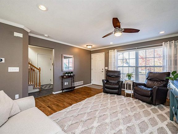Beautifully updated and well maintained open-floor plan home on an extra deep lot. Recently new and refinished hardwood floors gleam with abundant sunlight throughout living room, dining area and kitchen. Professionally painted white cabinetry and granite counters featured in kitchen with Whirlpool appliances: microwave new '21, refrigerator new '20 (with 5-yr transferable warranty), oven new '19. Large primary bedroom with walk-in closet and en suite bathroom with double vanity. The cozy basement rec room includes a fantastic wet bar and new basement carpet and paint in 2021. Backyard is fenced with a beautiful custom brick paver patio, and was graded with french drain installed in 2019. Roof replaced 2021. The useful backyard storage shed is very functional and sold "as is".