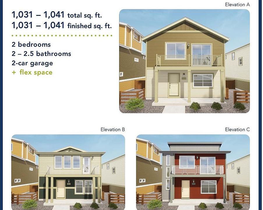 The Moreno features a 2-car garage, 2 bedrooms, 2–2.5 bathrooms. The primary suite is on the main floor with a spa shower, walk-in closet, and second bedroom. The open concept living room provides seamless access to the kitchen. This home includes a convenient laundry space, an additional private bath, and an open balcony with large windows which provide an abundance of natural light. These homes are built in cul-de-sacs with paver driveways.