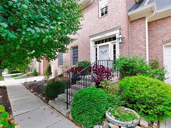 Brick Georgian Townhouse w/elevator (Best of both worlds) nestled in a beautiful stately neighborhood! Minutes from downtown Carmel & Monon Trail. Natural light streams into sunroom overlooking tranquil, lush garden, woods & expansive patio. Quality finished, marble, hdwds in kitchen & bk rm, 9 ft ceilings w/flat fin. Bedrm 2nd w/bath next to 3rd bdrm or ofs area also w/built in shelving & office desk. Laundry up, New furnace/air 90% (2013), Sunroom w/Pella windows/drs. Enjoy a stroll around Meadowlark Park! Also, Access at end of street to the Meadowlark Park & Monon walking trail. Easy move in and live.