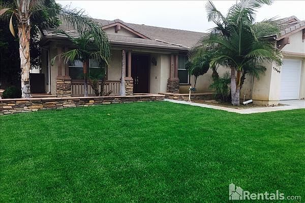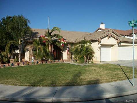 Spectacular single story home has lovely open kitchen, breakfast bar, formal living/dining areas with recessed lighting. Family room w/fireplace & entertainment alcove. Master suite with his/her vanity, roman-style tub, and separate shower stall. Nice backyard with large covered patio. Near schools & parks. Call 951-735-2000.