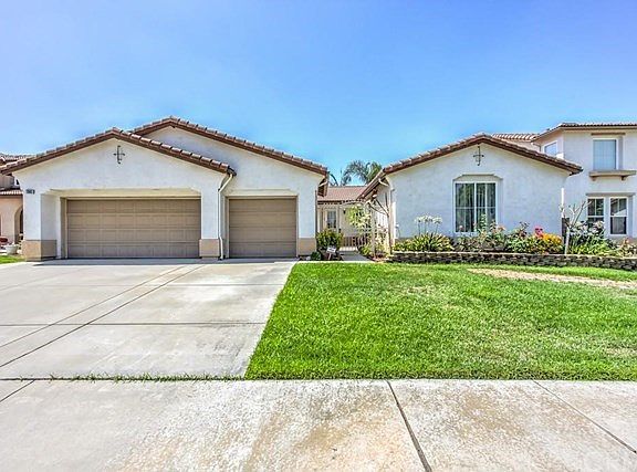 Welcome home to 13563 Falcon Ridge Rd. in the desirable Eastvale community. This open floor plan, one-story upgraded home boasts 4 bedrooms, 3 bathrooms, 2,591 SF living space, with a 7,405 SF lot. 3 car attached garage. Crown moldings with laminate wood flooring/tile throughout most of the home. Ceiling fans in all of the bedrooms. The kitchen offers recessed lighting, upgraded counter tops with backsplash, center island, and has plenty of cabinetry for storage. The spacious master bedroom features recessed lighting, dual vanity sinks, separate tub/shower, has direct access to the backyard, and has a walk-in closet. The landscaped backyard offers an alumna wood patio and has plenty of beautiful plants. This home is located close to award winning schools, numerous parks, plenty of shopping/entertainment, and minutes away from the 91/15/60 freeways.