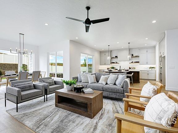 Get a 5.875% INTEREST RATE LOCK on this home when you buy in July. This home is thoughtfully designed with appealing architectural lines that draw you right in. The kitchen is certainly one of the home's many highlights with a island to create greater space and functionality. A wall-to-wall countertop space and backsplash along with a butler's pantry add to the highly functional nature of the home. You can’t miss the multi-gen suite, complete with an ensuite bathroom, walk-in closet, private living room, and kitchenette. The great room is certainly aptly named, and sits at the heart of the home, The master suite includes a split walk-in closet and a master bath with views out to the backyard. Enjoy this new home in Idaho’s best master-planned community. Coming 2024 the Dry Creek Ranch Community Center will encompass a 5-acre manicured , an 8,840 SqFt clubhouse and pool complete with unprecedented amenities. Home is ready now.