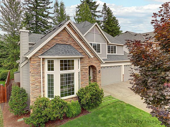 Watch the birds & enjoy nature from this premium lot in Arbor Cascadian. Spacious one-owner home backs to tranquil green space. Well-maintained. Gracious formal living room w/high ceilings, gas fireplace, & flooded with light.Private formal dining room w/wainscotting & butler pantry. Main level den/bedroom w/full bathroom. Five beds up + laundry.Gorgeous real oak hardwoods, built-in vac, wrought iron railings. Top schools. Open Sun 1-3