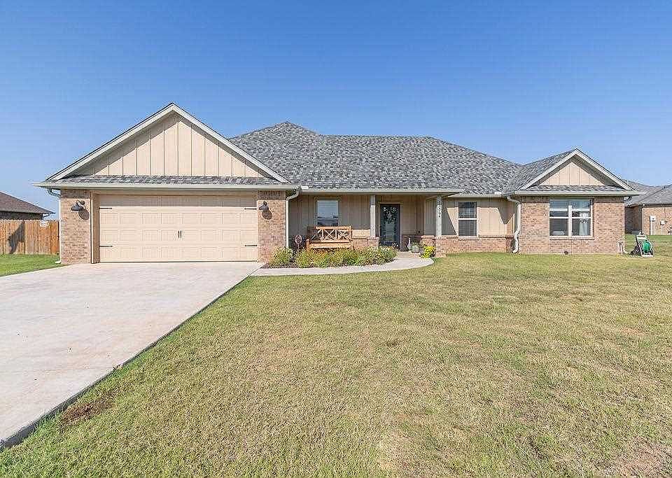 Welcome to this 4-bedroom, 2-bath home located in Yorktown Farms. Offering approximately 2,000 sq ft of well-designed living space, this property sits on a 0.5-acre lot with a full wood privacy fence—perfect for entertaining, pets, or enjoying your own backyard retreat. Step inside to an open concept layout featuring ceramic tile throughout the main living areas. The vaulted ceiling in the living room adds an airy feel and brings in plenty of natural light. The kitchen is both stylish and functional, with eye-catching blue cabinetry, a detailed tile backsplash, and an island with breakfast bar seating. A spacious walk-in pantry includes open shelving and a dedicated closet—ideal for storing small appliances and keeping your counters clutter-free. The primary suite is a relaxing escape with a large walk-in closet and a well-appointed en suite bath complete with double sinks, a soaking tub, and a tiled shower with a glass door. All guest bedrooms offer generous space and ample closet storage. Additional hallway storage includes two double-door closets for your convenience. Enjoy covered porches at both the front and back of the home, and make the most of the expansive backyard space. Located within the Elgin Public School District and just a short commute to Lawton/Fort Sill, this home combines comfort, style, and location. ?? Contact Rachael Jones at 816-838-7687 for more information or to schedule your private showing!