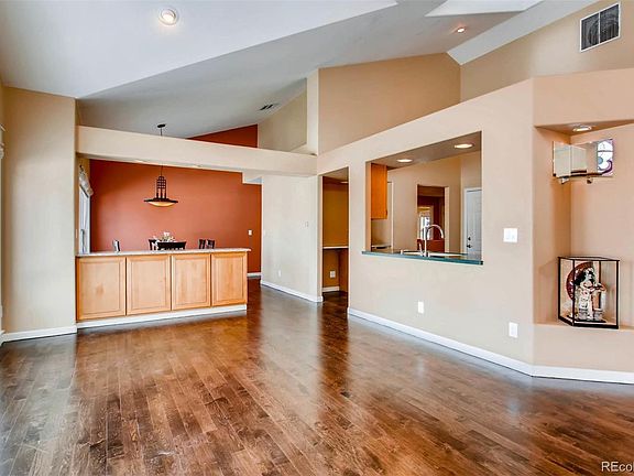 This custom built home has a bright and open floorplan perfect for entertaining. Enjoy the expansive views of the Rocky Mountains over the 10th green of the remodeled Thorncreek Golf Course. The main level has in-floor heat so during those cold winter days your home will stay warm and comfortable. Refinished hardwood maple floors on main level. Updates throughout the home including a double-oven and stainless appliances in the kitchen. The basement is a perfect place for an expansive gameroom. Brand new Denver Premium Outlets only a few miles away offering several shopping and restaurant options. Home is handicap accessible with ramp from garage as well as larger door entries.