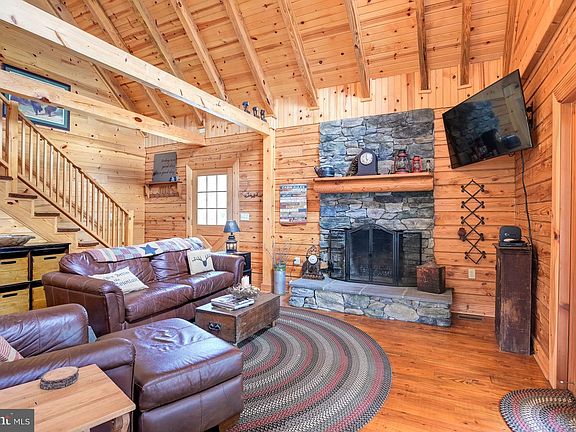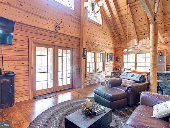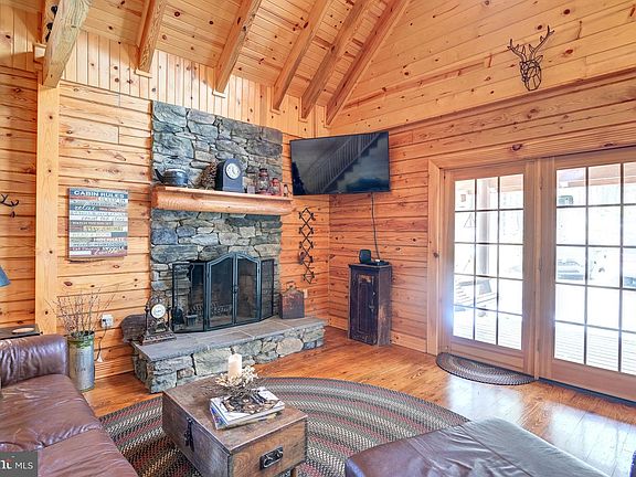 Welcome to White Oak Lodge! Stunning custom-built log home situated on 19+ acres boasting panoramic mountain views, private gated lot, lofty windows, gleaming hardwood floors, amazing wood walls, and soaring cathedral wood beamed ceilings! Two-story living room embellished with a stone profile fireplace; Eat-in kitchen highlighted with a stone front breakfast bar, ample cabinetry, sleek stainless-steel appliances, double oven, and casual dining area; Main level primary bedroom with en-suite full bath; Powder room and laundry room conclude the main level; Two bedrooms with vaulted ceilings and a full bath complete the upper-level sleeping quarters; Expansive lower level; Ideal vacation home or primary residence; The exterior features a covered front porch, wrap-around deck, secure storage, and incredible views! Your home away from home waits. This gorgeous furnished log cabin has many possibilities! A MUST-SEE! Offer Deadline 04/04/22 3pm
