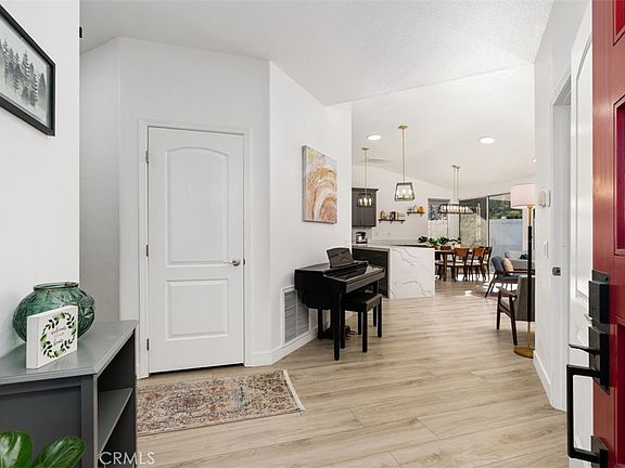 This beautiful single-story home with lots of upgrades will take your breath away. So conveniently situated on a corner lot the home offers 3 bedrooms and 2 bathrooms with an open floor plan. As you enter the home you are welcomed in the living room with high ceiling and big windows which give a note of elegance. Newly remodeled kitchen with expanded cabinets, walk in pantry and big island and stylish light fixtures. Luxury vinyl plank flooring in living room, bedrooms and kitchen. Both bathrooms have tile flooring. Master bedroom had an expansion with built in closet cabinets in addition to the walking closet situated in the master bathroom. The sliding door leads to covered Aluma wood patio. New energy efficient AC unit and ductwork. New tankless water heater, new garage door and new opener. Backyard is nicely landscaped with additional concrete work and huge covered patio with two ceiling fans. Fruit trees enhance the backyard view from the living room and the kitchen. And to top it off, the house comes with a paid off solar system designed to have 150% offset to the home needs. Walking distance from elementary school and park. The HOA offers 2 community pools, tennis courts, picnic area, fire pit, barbecue, playground, ex room, recreation room, club house.