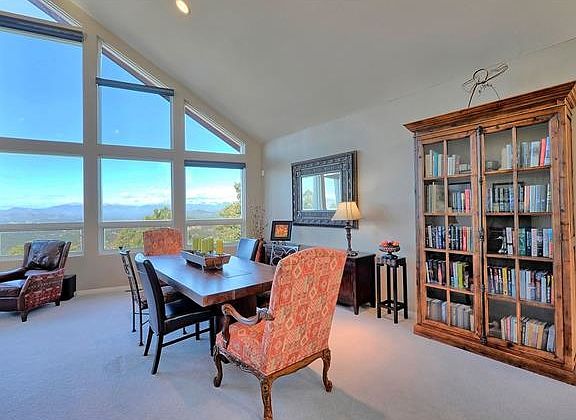 Striking mountain contemporary home with breathtaking view all around. This stunning home offers an open great room plan with large living area, dining area ready to accommodate large holiday gatherings, and spacious kitchen with upscale appliances. The spectacular views from Mt Evans to Pikes Peak frame the entire main level. In addition the main level also has a private in home office with built-ins and private deck with views to DIA and Castle Rock plus a fabulous quiet room perfect for reading. The spacious master suite has a sitting area, private bath and walk-in closet. 2 additional bedrooms share a lovely Jack and Jill bath. The walk out lower level offers loads of possibilities. A unique wine cellar is already in place. Outside enjoy the 5+ acres of peace and privacy. Easy access to Hwy 285 for commutes or recreation areas.