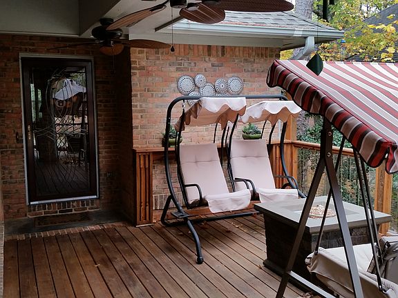Beautiful home in the heart of Auburn! Lovely hardwoods & crown molding throughout the living, dining, & kitchen. Great room offers gas log fireplace w/ built-ins to either side. Kitchen boasts wood cabinetry, plenty of counter space, & cozy breakfast area. Spacious master suite has double walk-in closets & large, private bath complete w/ step-in Whirlpool tub you must see to believe: air/water jets, chromatherapy, & aromatherapy! 2nd bedroom is good-sized w/ a large closet. Both bedrooms have new carpet, installed 2015. Large heated & cooled sunroom offers a pretty view of the wooded backyard. Perhaps this home's most charming feature is its amazing wrap-around deck, which is partially covered & offers twin ceiling fans & a canvas canopied area to keep you cool & relaxed! With plenty of room for a swing, patio furniture, & dining area, it's the outdoor entertainer's dream!