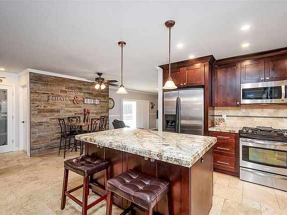 - KITCHEN FEATURES: 220 Volt Outlet, Pantry, Updated Kitchen, Breakfast Bar, Island, Counter - Stone