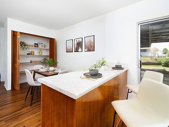 A rare opportunity with many possibilities! Here is your chance to own a charming 4-bed, 3-bath home in the Waiakea Area, conveniently located near parks, golfing, shopping and more. This well-kept home features 3 bedrooms and a larger primary bedroom with ensuite, two separate living areas, a dining area, large kitchen and indoor laundry room. Outside you’ll find a two-car carport with an additional storage room, covered patio and a low maintenance, fully fenced yard.