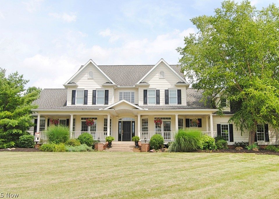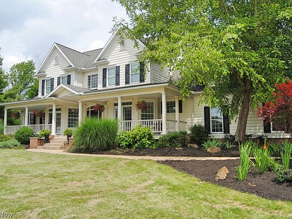 Custom built by Boggs, this Country French home has quality and character throughout! Perfectly situated 300 feet back from the road on a flat 2.5 acre lot. A total of 4 car garage, including 2 car attached garage and 2 car Carriage House garage with large loft area. Home features a first floor master suite, Great room with incredible 2 story stone fireplace. Gourmet kitchen with granite counter tops, maple cabinetry and breakfast bar. First floor laundry room, with back staircase leading up to 2nd floor. Formal dining room & office both have doors walking out to the wrap around covered front porch. Hardwood floors throughout the entire 1st floor. 2nd floor has 3 large bedrooms, plus a bonus room/playroom and 2 full baths. New carpet in the bedrooms. Revere Schools Call today for your private tour of this impressive home!