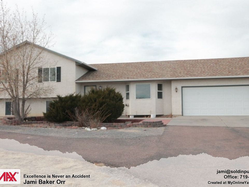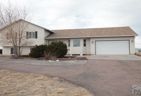 Look at this very large Tri-level home. It has gorgeous views from Pikes Peak and Wet Mountains out the dining and kitchen area. New paint, new carpet and a new roof are just some of the recent upgrades. There is a very large living room with nook shelving, a big eating area, tile floors and new stainless steel appliances. Upstairs has 3 bedrooms. A large master with his and her closets, 2 sinks, tile floors, new tub and tile surround, and new light fixtures. Master has a walk out deck to enjoy the mountain view as well. There are 2 other bathrooms and a full bath. Downstairs has a huge family room with a gas log fireplace, large windows to let in natural light, 4th bedroom that has a 3/4 bathroom. There is mature landscaping in the front with a circular drive. Backyard is fenced with a 2 car detached garage. Central air is a plus! Very large 1.8 acre lot.