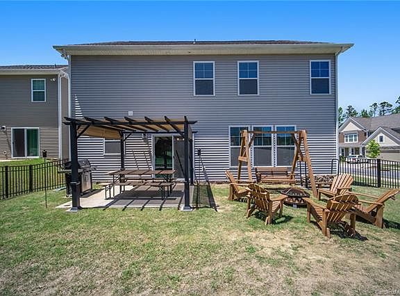 Coveted home in SKYBROOK NORTH VILLAGES on large corner lot with covered front porch! This almost new 4BR/2.5BA open floorplan is perfect for entertaining! Enjoy cooking for friends & family in the gourmet kitchen with huge island, beautiful ebony cabinets, granite, double ovens, gas cooktop, microwave, tile backsplash, & walk-in pantry. Host cookouts in one of the best backyards in the neighborhood w/oversized patio & beautiful pergola on level, private, fenced lot backing to common area. Snuggle up on cold nights in front of the gas fireplace from the comfort of your family room. Formal dining room could double as a home office. Private upstairs master suite has a huge closet, trey ceiling and a luxurious, romantic bath. Convenient upstairs laundry room w/cabinets & custom counter. 4th bedroom can be used as a bonus. Custom built-in drop zone right next to garage door. Move-in ready with neutral paint & hardwood floors throughout. Faces northwest & zoned for COX MILL HIGH in 2020.