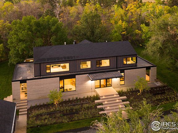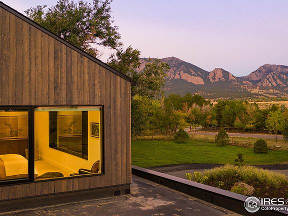 One of the most spectacular and luxurious Modern homes in Boulder Colorado. Meticulously designed home features mesmerizing iconic mountain views nestled within 5 park-like acres and contains a 2-stall barn, pasture, seasonal pond, water rights and oversize 3 car garage. Custom built in 2019 by top rated architect/builder, featuring gorgeous international design elements, high-end finishes, fixtures and natural materials. Situated in Wildflower Ranch, this home is in itself a work of art. Architectural drama with expansive windows facing the Flatirons. Blend of Scandinavian and Japanese designs. Finishes including custom stained wide plank oak flooring, state of the art chef's kitchen, Wolf, Sub-Zero, Liebherr, Blanco and gorgeous quartz countertops. Lighting details, Sonneman, Tech Lighting & Aerin to name a few. Artesian tiles by Ann Saks, Tabarka, Mosa & Kursaal. This home sets a new standard for rural living. Mature trees, Marpa landscaping & expansive outdoor patios.