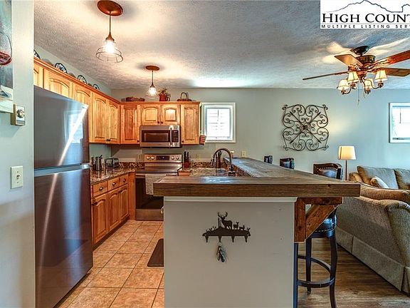 Elegant 2 bedroom/2 bath condo with Grandfather Mountain views for under $200,000! Completely updated and upgraded, this ground floor unit has a spacious patio for taking in the cool breezes and views of Grandfather. You can even enjoy the view of Grandfather mountain from the master bedroom! Enjoy a kitchen with stainless appliances, granite counters are a great eating bar. Kitchen is open to the living area that features a stone fireplace and large windows to let in the light. The spacious master bedroom has its own bath. There is a stack washer dryer as well. Being ground floor, this condo is great for pets, and you can easily use your grill (not allowed on upper level balconies). Hawks Peak condos are very well maintained, with a new roof and external painting over the last two years. The sellers are replacing the front windows well ahead of scheduled timing so new owner has no worries. This condo is located at the beginning of Seven Devils, centrally located to all the NC High Country has to offer. Long term and vacation rentals are allowed and many owners use their condos part time and rent out when not here. Great investment and offered mostly furnished!