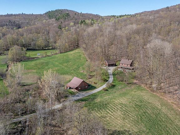 This south-facing post-and-beam home comes with a large guest area over a 2-bay garage, a quintessential barn any horse would be happy to call home, and 10 acres of bucolic pastures and forested hillsides. The thoughtfully maintained dwelling has a large living area with two walls of custom built-in cabinetry and a gas stove, and a kitchen with counter seating that opens to a dining space. There is lots of storage, including a mudroom with cubbies and a 3/4 bath on the main level. On the 2nd floor, the 3 rooms are used as bedrooms, and there is also a full bath. The third floor has a large, open bonus room. The detached, oversized 2-car garage has a separate entrance to its living space that includes a kitchenette, eating area, bathroom, and a guest room. Near the bottom of the driveway sits a pretty 4-stall barn with heated tack room. The grounds are lovely and include a combination of pastures, woods, established perennial beds, stone walkway, and a deck on the back of the house. Hinesburg Town Forest trails are nearby, and it’s just minutes to CVU, shops, and restaurants in Hinesburg.