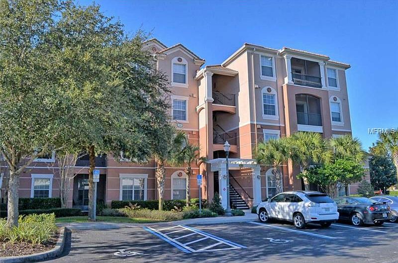 STOP wasting your time with short sales and or REO's. This condo is in GREAT shape, exceptionally upgraded and can be occupied immediately!! And all furniture currently in the home can be left as a gift with an acceptable offer too. This first floor unit has a screened porch that opens to the yard with convenient access to parking lot, carport and clubhouse. The coveted gated community of Bella Trae of Champions Gate caters to resort style living and includes a clubhouse with fitness center, billiards, ball rooms, heated pool, spa, sun deck, putting green, bocce ball and tennis courts. HOA dues include basic cable, water, sewer, insurance on the exterior of the building and high - end club house amenities. Easy to see. Call today!
