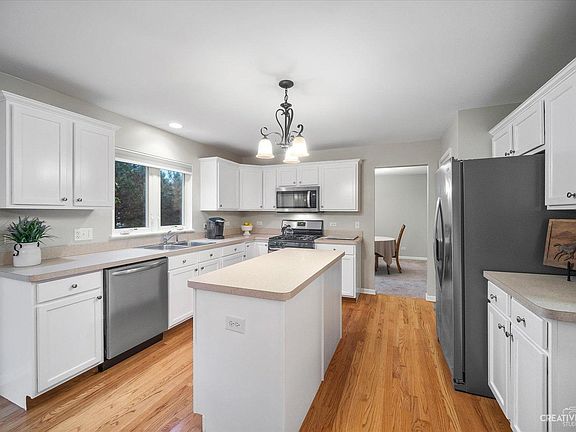 Beautiful 4 bedroom in Arbor Ridge is in excellent condition & shows great! Ideal floorplan with open concept family room & kitchen. Hardwood flooring flows through the spacious foyer to the kitchen. The kitchen is updated with white cabinets, new SS appliances, eating area, planning desk and island with storage. The step down family room features a vaulted ceiling & beautiful brick gas start fireplace. Separate dining room with brand new light fixture. Convenient 1st floor den is perfect for home office or e-learning. Large master bedroom with 2 WIC & larger master bath, freshly painted. Bedrooms 2-4 are all a good size with neutral decor. Updated light fixtures. 1st floor laundry. There is plenty of storage in the unfinished basement with crawl space. Enjoy the outdoors on the large paver patio surrounded by mature landscaping. Great property!