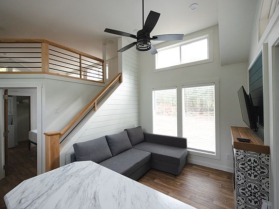 This tiny home is fully furnished! Enjoy this 2 bed 1 bath tiny home with a full kitchen, washer and dryer, fold-out couch, and lofted upstairs area! Also, enjoy a beautiful evening on the porch or out by the provided firepit. Contact us today for more information!
