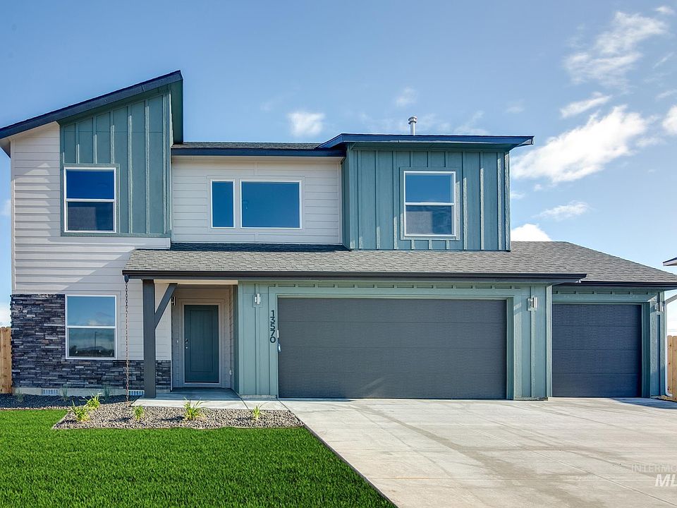 The Amelia 2636 | The wide open living room has a view of the kitchen with an island, and sizable pantry. Upstairs, a large loft area. The master bedroom features a luxurious master bathroom with double vanities, large walk-in closet and walk-in shower. Three garage for all the storage and toys! Photos are actual home.