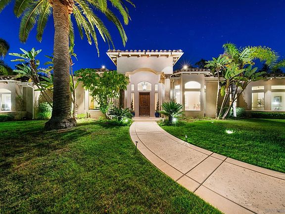 Cozy Single-Level Estate with a detached Casita in the prestigious enclave of Green Valley Summit positioned close to schools, lake and park. This private oasis exudes a rare blend of privacy, sophistication, and resort-style living nestled in the scenic hills, there are panoramic views from every direction. Set on over two meticulously landscaped acres, this home captures the essence of Southern California luxury. As you arrive, you’re welcomed by breathtaking mountain views and fruit orchards from the front of the property, creating a dramatic and unforgettable first impression. Inside, the home features over five spacious bedrooms, a dedicated media room, and a detached casita—perfect for guests, extended family, private office space.Crafted with the highest attention to detail, the interior showcases hardwood cabinetry, slab granite countertops, and elegant travertine flooring, all complemented by commercial-grade stainless steel appliances in a gourmet kitchen designed for both form and function. A newly installed air conditioning system ensures year-round comfort, while a high-end water purifier and softener system provide clean, refined water throughout the home. Step into the resort-like backyard, where you’ll find a heated pool and spa, surrounded by $300,000 in lush, professional landscaping that offers complete privacy and serenity. The backyard provides a tranquil retreat, enhanced with a covered entertaining area and beautiful mature trees. Further elevating the property is a private well and reservoir tank, supporting eco-conscious irrigation for both the landscaping and the orchard. A upgraded sprinkler system ensures efficient water distribution across the expansive grounds. The 4-car garage includes a high-end EV charging system, and the home is outfitted with a new alarm system, enhanced whole-home WiFi and Ethernet infrastructure, and an upgraded speaker system for seamless connectivity and entertainment throughout. This is truly a one-of-a-kind opportunity to own a home that combines timeless design with a luxurious Mediterranean masterpiece in one of Poway’s most exclusive neighborhoods. With top-rated schools, hiking trails, and upscale amenities just minutes away, this estate delivers an unparalleled lifestyle—indoors and out with about 450K of upgrades !