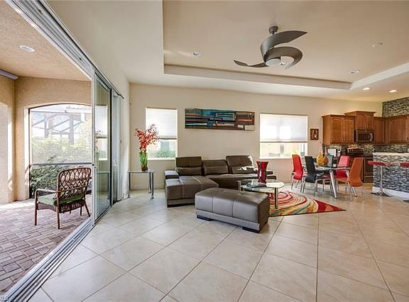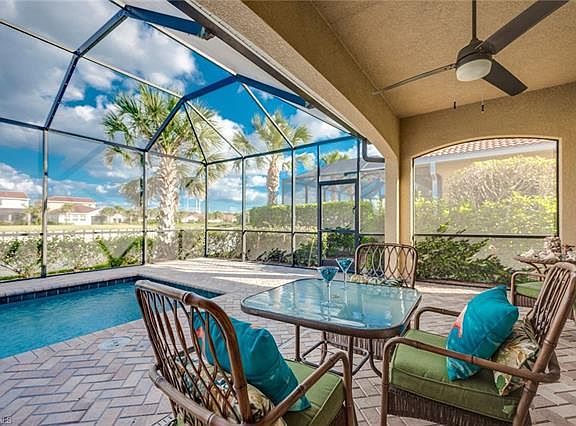 LOCATION, LOCATION - This highly updated, light & bright, cheerful, modern home is located in Prime Naples in the BEST School district! Tile flooring thru out with Engineered Hardwood in all bedrooms, French Doors in Formal Dining/Den ~ Relax in your extended caged Lanai with heated Pool overlooking a serene Lake~ Custom painted tray ceilings, custom paint in bedrooms, Stainless Steel appliances, Backsplash extended to ceiling, Large pantry, Modern designer type ceiling fans throughout, Garage Floor features epoxy protective layer. HUGE walk-in closet in Master. This perfectly located GATED community, with LOW HOA fees, features a Clubhouse, Lap pool, BBQ area, Exercise Room, Basketball and so much more. Schedule your private showing Today!