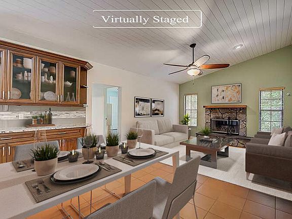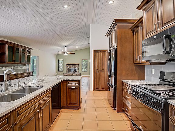 Welcome to this gorgeous West Palm Beach neighborhood! Terrific 3 bedroom and 2 bath home with a 2 car garage. Enjoy cooking in this stylish kitchen with stainless appliances, tile back splash, granite counter space and a center island, great for food preparation. Flow into the living room featuring a cozy fireplace, perfect for entertaining. Lighting, ceiling fans, and fixtures flow throughout. Take advantage of the office space with library shelving. The main bedroom boasts a private ensuite bathroom and closet. Other bedrooms offer ceiling fans and sizable closets. Relax with your favorite drink on the enclosed patio space or on the uncovered deck overlooking the lush green outdoor space. This home has been virtually staged to illustrate its potential.