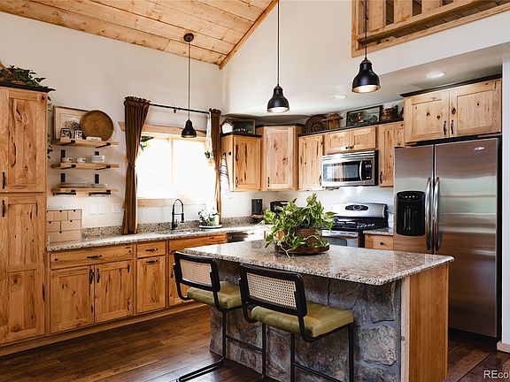 Welcome to The Fox Den! Come see the aspens change from your storybook property sitting at an elevation of 8,000'. Enjoy direct access to hiking and horseback trails on the adjoining Mountain Area Land Trust that follows along the West Resort Creek, and beyond to BLM land. This sunny, south-facing 4 bedroom, 3 bathroom modern mountain home on 11.03 acres is exceptionally appointed and includes the luxury of radiant-floor heat, cedar finishes, a seasonal creek, plus two detached garages. Cozy up by your truly one-of-kind pass through indoor-outdoor natural gas fireplace for those quintessential Colorado mountain moments. This amazing home also features a Chef’s kitchen; a main level primary bedroom with en suite bathroom; spacious loft, which can be the non-conforming 4th bedroom or office; vaulted tongue-and-groove ceiling; and beautiful hardwood floors. Downstairs presents a sunny walkout basement with custom acid-stained concrete floors, a large family room, full bathroom, and two bedrooms. This exceptional quality home has been renovated with professional exterior paint, an additional bedroom, new fixtures, updated kitchen, a radon mitigation system, enhanced landscaping, professional fire mitigation, and more! Get plenty of sunshine or shade on the gorgeous and expansive covered deck and patio areas. Zoned A-2 legal horse and livestock property eligible for water augmentation rights through the South Platte. Work from home with the proven reliability of year-round Starlink coverage. Unwind with the tree-lined, 4-mile drive home directly off Highway 285. Live a world apart with shopping and restaurants within 10-15 minutes. Metro Denver is 45 minutes away, and DIA is accessible in less than 90 minutes. Live in nature, and travel the world! You now have the amazing opportunity to make The Fox Den your mountain haven.