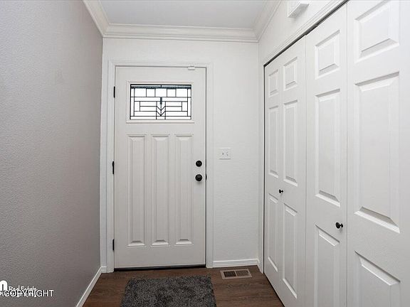 This beautiful Hall home has it all! Featuring quartz in the kitchen and granite in both bathrooms, stainless appliances, a paved RV pad, on demand hot water, brand new carpets, a 10x20 shed, and a fully fenced back yard. This half acre property backs up to a tree lined greenbelt and is the ideal location for commuting to JBER, the big city, or locally.