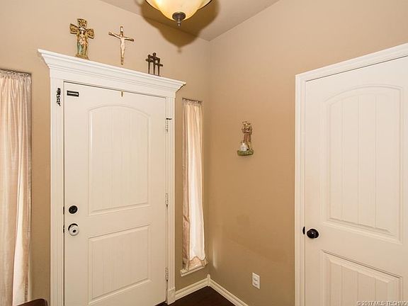Rare find in Coweta, Country living on 1/2 acre, Full brick one story, Bamboo floors, High ceiling in living w/extensive crown moulding, Pristine kitchen w/breakfast bar & pantry. Master w/tray ceiling & walk-in closets. Inground safety shelter.Pond view!