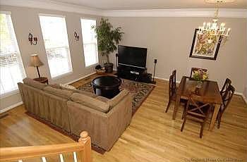 Beautiful TH w/3BR, 3.5BA, 2,200+SqFt, 9-foot ceilings, crown molding, 2" blinds & 1-Car Garage. Hardwoods in LR, DR, Kitchen & Foyer. Large Kitchen w/ island, eating bar, pantry, Breakfast Rm & sliding glass door to big deck. MBR w/ walk-in closet & MBA w/ double sinks, tub & sep shower. Daylight Rec Rm w/ gas FPL, Full Bath & French door to fenced patio. EZ access to retail, airport, Toll Road.