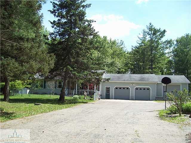 Get your privacy without sacrificing on location! This 3.3 acre property is conveniently located just North of I-96. Making commute to Greater Lansing a breeze! This is a sprawling 3 bedroom Ranch Home with finished basement offering a large family room, updated 1/2 bath & possible 4th bedroom. Wildlife visiting the area is a daily experience waiting for you to enjoy while relaxing on the expansive covered wood deck. There is a 32x32 pole barn that just needs a buyer's finishing touches. The 3+ car garage with 1 8" door with concrete floors, a full bath, 35x8.8 Tool area and an additional 12x5 room behind the garage It is a mechanic or car enthusiasts dream! Room for all of your toys! The interior of the home offers a gorgeous open and bright Custom Kitchen with aristocraft hickory cabintry, updated counters and flooring. All appliances remain! Beautiful wood floors throughout the Eat-in-Dining area, hallway and living room. Custom paint & decor throughout. Relax & enjoy the nature views from the finished sunroom offering lots of natural light & window views. One bedroom currently has laundry hook-up but there is optional laundry hook-up in the lower level as well. Spacious Master Bedroom & an additional nice size third bedroom. Beautifully landscaped lot with an abundance of plantings & brick walkways. The secluded home is located on the corner of Wright Road and a Private Drive. You will want to see this one! RESERVED ITEMS: WATER FOUNTAIN, CERAMIC DEER IN YARD, WOOD CARVED...