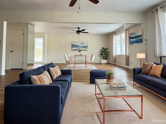 This 6 room, 4 bath home sits on a level lot, along with front unit A (1 bed, 1 bath), total up to 7 rooms and 5 bathrooms. Unit A may also be available, and can be rented separately or together. This home features a large living room, 2 open kitchens, 2 washers and dryers, split air conditioning plus fans, multiple storage cabinets, own private backyard, and covered carport for 2 cars. Home includes a bonus room which opens into the living room, which can be separated into a room, home office or game room. This large home is primarily single level, and includes an attached duplex (2 bedroom, 2 bathrooms, 2 living/dining areas, own kitchen, own washer/dryer, walk in closet), that can be separated into another living unit (by a door). Located on a quiet street with ample street parking. Conveniently located in the desirable Kailua neighborhood, just 20 minutes to downtown Honolulu; 5 minutes to Kailua Shopping Center, Target, Whole Foods, and farmer's market. Relax at the world famous Lanikai and Kailua beaches, rated among the best in the world. Shop, dine, and catch a movie at the nearby Windward Mall. Upgrades in progress, and may not appear in the video and pictures. Photo includes virtual staging. Available about February 1. $6800 per month. Electricity and water not included. May consider small pet. No smoking. Prefer 1 year lease. Renter's Insurance required. Yes, it is still available. Photo includes virtual staging. Please contact Chris for the video tour link and to schedule a showing. Pet negotiable. No smoking. Renters insurance required.