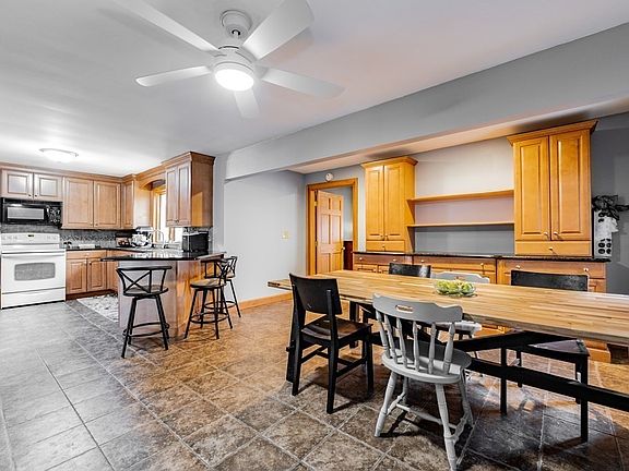 Set on a just about an acre, not far from Bear Hole, is where you'll find this unique sprawling Ranch. So many amazing features in this home...breezeway upon entry, Herzenberg kitchen cabinets w/granite counters, breakfast bar w/stools, tile floor which flows into the dining area w/ a large built in hutch for additional storage. The bedroom off the kitchen could be a nice family room, if 5 bedrooms aren't needed. The living rm is spacious w/hardwood floors, built ins, huge bow window facing west (sunsets!) and features a gorgeous, 3 sided glass enclosed fireplace. 3 bedrooms and the master bedroom, all have hardwood floors, the master suite has a small walk in closet and a 3/4 retro master bath. Walk out basement is partially finished w/a wood fireplace, rec room, laundry room, craft room, possible work out area. Amazing 25x25 screened in gazebo overlooking a wooded backyard. Main level windows are Pella(10yrs old apo). High efficiency 3 zone Buderus boiler. Central Air condenser 2021