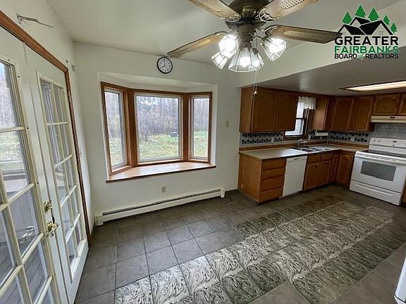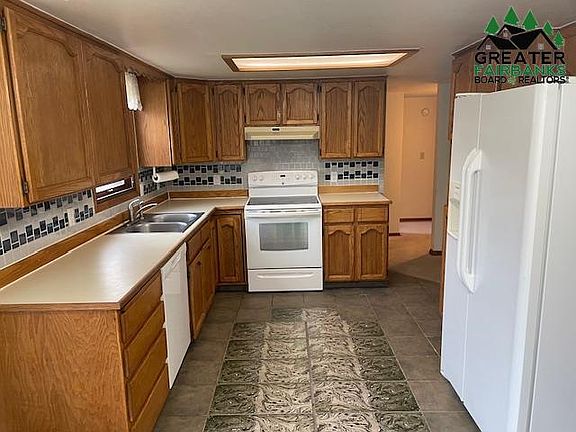 Bright and open multi-level family home in quiet area close to Ft. Wainwright back gate. High vaulted ceilings. Three bedrooms with two full baths. Lots of easy parking. Available Now!