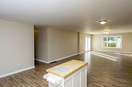All new interior greets you when you step into this spacious 4 bedroom, one floor house. Open floor plan with split bedroom design. Solid surface counters, stainless steel appliances and an island. Master bedroom with fireplace and ensuite has a step-in shower. Three more bedrooms and Two guest bathrooms, one with a shower, the other with a tub. Large deck for outdoor entertaining and a fenced yard for play. Great room, open to dining area, has a bay window for view of the backyard. Separate utility room with a utility sink and new hot water tank. There is off street parking. All new mechanical (all aspects of HVAC system, including duct work) and new water heater! Also the rear roof has been replaced.