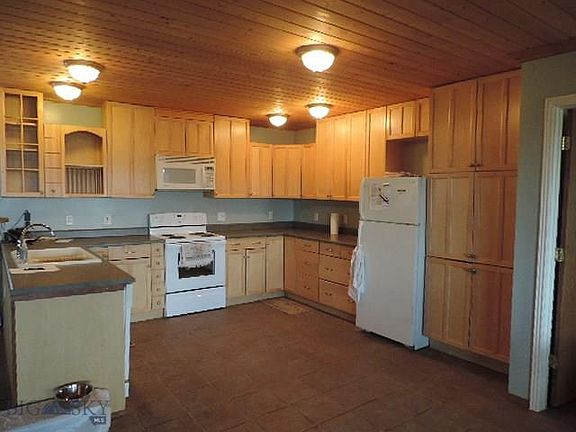 Charming 1290 sf, 2bd 2ba, farmhouse on 20.45 acres with garage/barn, greenhouse, cross fencing - great for horses. Farmhouse has radiant floor heat, with a woodstove, Rennai heater, on demand hot water, maple cabinets and an open floor plan. There is a rough apartment in the barn, with another building that could be restored to a rental with a lot of work. Has 2 wells and 2 septics. Apple trees, plum trees and raspberries. The views looking down to the Centennial and the Blacktail are spectacular. Only 7 miles from town.