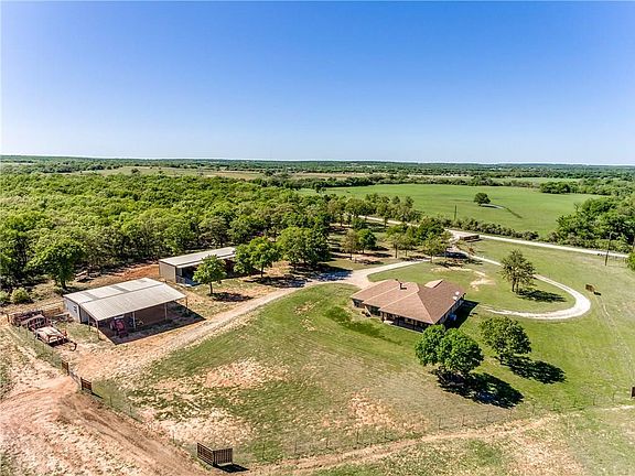 This 4 bedroom 2 bath ranch house on 21 acres is a must see! It sits on a quiet gravel road and is located about 30 minutes from downtown Weatherford. The home features many windows, letting in tons of natural light, a wood burning fireplace, carpet and tile flooring and stainless-steel kitchen appliances. 60x28 3-sided horse barn with 4-10x24 stalls and a 13x10 tack room. 47x42 metal barn with equipment parking attached and a 24x32 enclosed workshop with bath, electric and separate septic. 28x15 3-sided horse shelter. Sandy loam soil. Perrin-Whitt ISD.