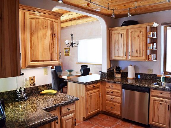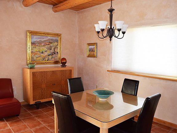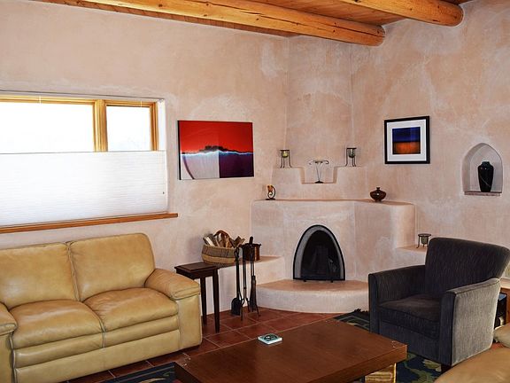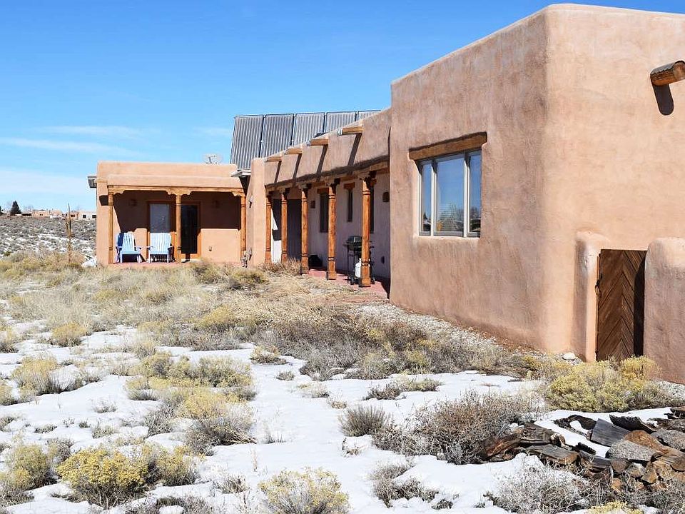 Custom built 2005 Pueblo style home located in Taos Mesa Estates is perfectly positioned to capture breathtaking views. Fine craftsmanship, architectural details, quality finishes and appointments throughout combine elegance, efficiency and comfort. Skylights and over-sized windows provide an abundance of natural light. The open living/dining area features high ceilings, kiva fireplace and patio perfect for entertaining while enjoying magnificent views. This energy efficient, pumice crete construction 1850 square foot home features 2 bedrooms, 2 full baths and an office with hot water radiant heat. Plus an attached heated 2 car garage with hot water baseboard heat. In 2011 a 489 square foot studio was built with separate entrance to the south side of the garage. The studio is 2x6 frame construction with hot water radiant heat on a separate zone. Solar hot water installed in 2006 and photovoltaic panels were installed in 2011 for additional efficiency. South facing covered portal overlooks Pueblo land on 1.04 acres.