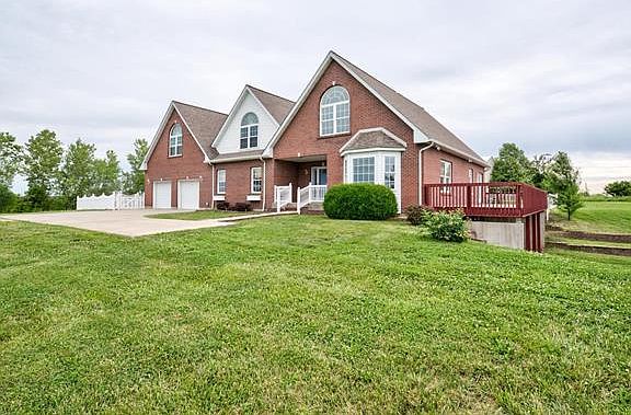 In the country & literally minutes from everything is this ALL BRICK 3 BR, 4 BA geothermal home on 5 acres. Entering in is a large foyer w/open staircase, to the left large living room w/fireplace, to the right a large dining room natural light & plethora of windows. Large kitchen w/tons of cabinetry, pull out drawers, kitchen island and new c-top, back splash and flooring in 2017. The main floor also features a 1/2 BA, office, family room, bedroom with 3/4 BA and laundry. Upper level includes loft room w/walk out deck, HUGE master suite & HUGE master bath w/Jacuzzi tub & separate walk-in shower. A 3rd bedroom & another full BA & bonus room. Home has 2 separate entrances to upstairs & downstairs! HUGE wrap-around porch on back & side of the house perfect for entertaining. Walk-out basement,covered patio & terraced lawn on south side of house. Large fenced backyard, pond & ENORMOUS 40x60 insulated outbuilding w/loft concrete floors & electric!