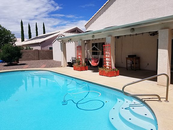 Immaculate three-bedroom, two-bathroom, three car garage pool home, located on large lot with view of the Huachuca mountains. Split floor plan with large open family area/kitchen illuminated by two skylights. Extra Large covered patio in the backyard overlooking solar heated pool as well as the mountains. Front and backyard beautifully landscaped with drip and irrigation system. Includes A/C, gas stove, refrigerator, dishwasher and built-in microwave. Bonus. Home has a fully finished, 500sqft detached shop with electricity, A/C, heat, water and amenities. The shop can be utilized to meet the needs of the tenant. Rent negotiable with two-year or longer lease. Pet(s) must be approved. $300.00 pet deposit required. Owner pays for monthly pool service. Security deposit and 1st-month rent due at signing. Please contact Bryan @ 520-226-7623 Rent negotiable with two-year or longer lease. Owner pays for monthly pool service.