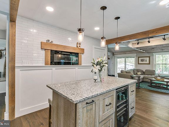 This magnificently finished single-family home, set on one of the most spectacular lots, offers a completely turnkey appeal with fully updated finishes at every turn. The current owners have done an incredible job fully updating this home throughout their ownership making it such a great buy. The first floor offers an open concept with exposed beams and a brand-new staircase. The kitchen is light and bright with gray shaker cabinets, updated granite countertops, stainless steel appliances, and a brand-new perfect-sized island for seating or serving. The living room features a wood-burning stove, exposed beams, hardwood flooring, and ample natural light offering you plenty of space for relaxing and entertaining. Finishing out the first floor, you'll find a great-sized bedroom with its own full bathroom, and moving towards the front of the house is a perfectly sized home office space with its own fireplace. Upstairs are 2 large bedrooms both with their own fully updated bathrooms. The primary suite offers a beautiful balcony overlooking the expansive greenery. The lower level offers an incredible finished space with a walk-up bar, epoxy-coated waterproof flooring, and laundry space with extra storage. Outside, you'll fall in love with your own private oasis made up of a serene and secluded lot, private deck, firepit space, hot tub, a water feature flowing into the pond, brand new shed, all new landscaping, plus an incredible 1.35-acre lot. The lot offers a paved driveway plus an additional U-shaped gravel parking. This home is one you’ll be very proud to call your own. Take advantage of this amazing serene location while still being close to everything you would need! *Please see the document showing all of the updates and the floorplan*