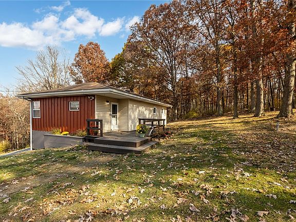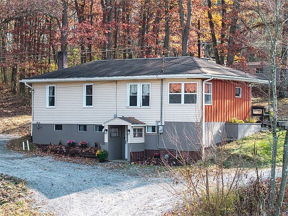 This charming 2 bed 2 full bath home sits on 1.3 mostly wooded acres and is surrounded in the back by state game lands! The main floor is open concept with hardwood flooring through out. The kitchen offers newer stainless steel appliances and wood cabinets and opens to the dining room and living room areas. The master bedroom is extra roomy and can be divided to give a third bedroom if needed. The main floor is completed with another bedroom and updated bathroom. The basement is walk out and has plenty of room for a game room. There is also another full bath with stone accents on this level. There is a large garage with a loft that was used for many projects and is perfect for all of your work shop needs. The main water lines have all been replaced as well as updates to the electrical and plumbing. This home is move in ready and waiting on you!!