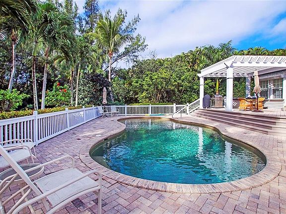 Sought-after, friendly, golf course community, this low-piling, charming cottage-style home boasts four bedrooms, 3.5 baths, large heated pool, hot tub and deck, screened and open porches to welcome guests and enjoy beautiful grounds. Quality construction by Bruce Drobnyk the Island-style detailing is extremely appealing and well-conceived. Private waterfront property on ½ acre, Eat-in white chef's kitchen w/wood-beam ceiling, large walk-in Butler's pantry, spacious living room w/gas fireplace, master bedroom suite on first living level, separate den or office, 10' ceilings throughout. Upstairs has three large well-appointed bedrooms and two baths. Walk-in closets, large garage with storage above, separate laundry room conveniently located off the kitchen.