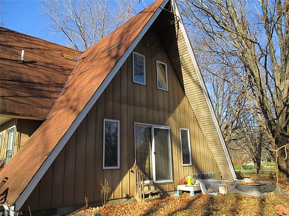 Diamond in the rough. Looking for something different on almost 2 acres? This is it. A-frame home with 3 story stone fireplace. Walk out lower level. 3 full baths. Great location close to Route 43 minutes to 76 for easy commute to Akron/Canton/Cleveland or Youngstown. Selling AS IS.