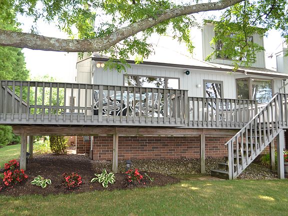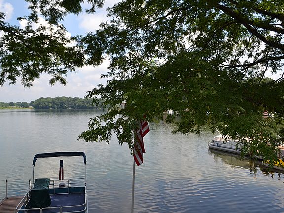 This condo offers you the most beautiful view and location in Meyers Lake Village. From your NEW oversized TREX deck you look out at your boat dock and boat waiting for you to get on the water. The deck has a mounted gas grill for your convenience. There is also a private back deck in the same TREX material. The condo features a Master Suite with walk in closet, Bath with double sink vanity and a bonus area with plenty of light, offering a view of the lake and is a serene area for resting, reading, artistry or extended dressing area, whatever your need. From the Kitchen, Dining and Great Rooms you have a gorgeous view of the lake year round. The vaulted ceiling Great Room features a fireplace wall with built in slide out shelving, so nice! The Guest Suite is so comfy with full bath and NEW sliding doors to the back TREX deck. The Office/Den could be a 4th Bedroom or fitness area. The exterior has recently been totally resided with a quality shake look vinyl for exceptional appeal. Don't forget you have a full basement that could be finished if you desire still more living space. The lake has a sandy base and is great for swimming due to this area was once the beach area of Meyers Lake. The neighbors Gazebo sits on what was the base of the Rocket Ride. Fireworks on 4th of July are awesome over the water.
