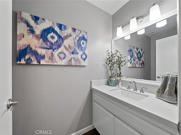 Stunning Condo located on the west side of Corona with Beautiful upgrades throughout!! Come fall in love with this move-in ready home! Gorgeous upgraded kitchen offering an abundance of white cabinetry, quartz counter tops, stunning backsplash, newer stainless steel appliances, double oven, refrigerator is included in the purchase, kitchen opens to the dining room with newer slider door leading to the patio perfect for entertaining family and friends, both powder bath and upstairs bath have been upgraded as well with new vanity's, quartz counter top in the downstairs powder room bath, decorator style mirrors, new fixtures and hardware, new tub/shower combination in the upstairs bath. Gorgeous greenbelt view from the larger primary bedroom. Direct access off the kitchen to a single car garage with an additional parking space just steps away. Secure laundry room is shared with the 3 other units. A playground is located within walking distance. Additional upgrades include: All newer windows throughout, beautiful wood like flooring, newer carpet upstairs, upgraded baseboards, ceiling fan, updated electrical switches, updated closet doors in both of the bedrooms, NO popcorn ceilings, additional storage under the stairs, wood work on the side of the stairs, newer A/C unit and so much more! The HOA includes: Water, trash, exterior maintenance along with so many amenities: A lake with paddle boats, fish & beach, pool and spa, park with play equipment, pavilion, BBQ's, picnic benches, tennis courts, volleyball court and a basketball court. Conveniently located within walking distance to stores, restaurants. Village Grove Community is West of the Corona circle and close to fitness, shopping, grocery, restaurants and schools. This home is truly a must see!!