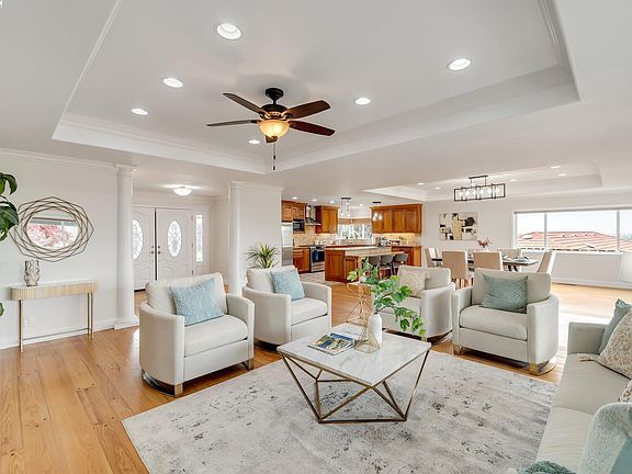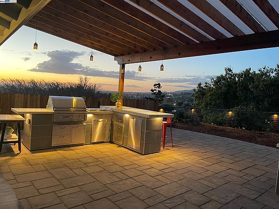 Nestled between downtown San Leandro & Lake Chabot light & bright, beautifully updated Bay-O-Vista home offers an open design, spacious & elegant living indoors and outdoors. Primary En Suite is 400+ sq ft & includes Jacuzzi tub with view & oversized walk in closet. Secondary bedrooms are spacious and private. Large Flex Room offers many options, panoramic views of the San Francisco Bay, Bridge & Skyline, Oakland Hills! Outdoor Private Oasis includes: NEW kitchen with Quartzite countertops, bar seating for 4, Double Propane Grill w/ side burner, Refrigerator, Pergola, Sun Sail Shade, large level patio with custom pavers! New Paint inside & out, New SS appliances, gas oven/Range, large center island, large level driveway, double pane windows, copper water pipes, R-38 ceiling insulation, tankless water heater, 7" seamless aluminum gutters, coffered ceilings & ceiling fans in all Living Spaces, deep base board & crown molding, solid core doors, 8' mirrored wardrobe doors all Bedrooms & more! Excellent Freeway access to all Major Bay Area Cities, Minutes to Oakland International Airport, BART, Michelin Bib Gourmand award winning restaurants, Bay-O-Vista Swim and Tennis Club, Lake Chabot Regional Park, schools, worship centers, community events, entertainment and recreation.
