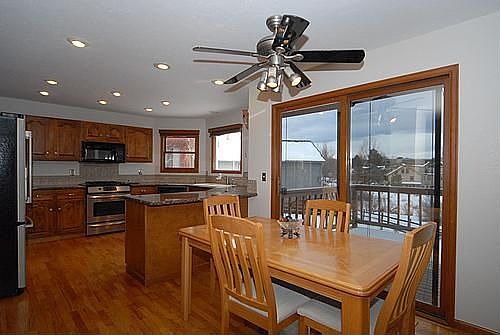 Take in the stunning mountain views overlooking the mountains, open space and pond. Host great parties with the large kitchen, open floorplan, vaulted ceilings, expansive windows and multiple seating areas. Relax in the quiet and private setting on the large deck or in the inviting and comforting master suite with custom tile work. Appreciate the fine touches of cherry and oak hardwood floors, stainless appliances, granite kitchen countertops and corian bathroom countertops. Hang out with family and friends in the large great room with fireplace or in the finished walk-out basement with wet bar. Don’t worry about storage – this house has plenty. Enjoy the convenience of a great location – home backs to Lee Gulch Trail for biking, walking or running, children can walk to elementary and high schools without using the roads, close to light rail.